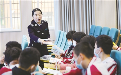 近日,安徽省合肥市蜀山區(qū)琥珀街道聯(lián)合當(dāng)?shù)厮痉ㄋ_展憲法宣傳進(jìn)校園活動(dòng),為中學(xué)生講解憲法知識。 (圖片來源:視覺中國)
