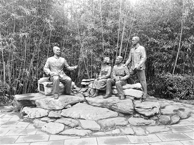 圖為人大校園內(nèi)雕塑《吳玉章校長與學(xué)生在一起》。 本報記者 郝思斯 攝