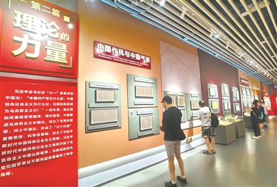 7月6日,觀眾在“百年恰是風華正茂——大型主題檔案文獻展”參觀“理論的力量”單元。 本報記者 段相宇 攝