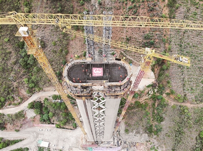 圖②為中老鐵路元江特大橋主墩封頂施工場景。 李國斌 攝