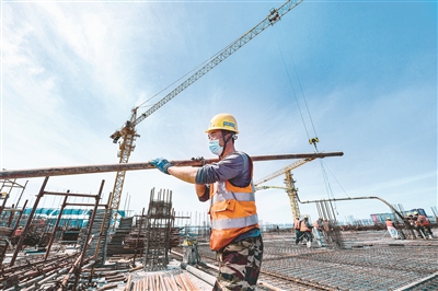 一邊抓好疫情防控,一邊緊張生產(chǎn)施工。圖為遼寧省沈陽(yáng)市中國(guó)醫(yī)大一院國(guó)家腫瘤區(qū)域醫(yī)療中心工程項(xiàng)目施工現(xiàn)場(chǎng)。 (圖片來(lái)源:人民視覺(jué))