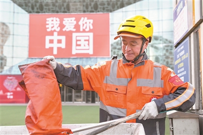 9月30日清晨,在吉林省長(zhǎng)春市朝陽(yáng)區(qū)紅旗街與同德路交匯處,環(huán)衛(wèi)工人廉士微仍然在堅(jiān)守崗位。新華社記者 張楠 攝