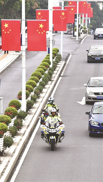 9月30日,在安徽省合肥市,交警蜀山大隊(duì)鐵騎中隊(duì)在南一環(huán)開(kāi)展路面巡查,守護(hù)市民假期平安出行。新華社發(fā)(陳三虎 攝)