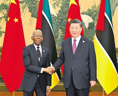 10月19日晚,國家主席習(xí)近平在北京人民大會堂會見來華出席第三屆“一帶一路”國際合作高峰論壇的莫桑比克總理馬萊阿內(nèi)。新華社記者 殷博古 攝