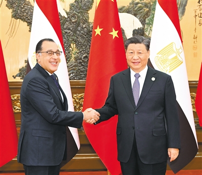 10月19日上午,國家主席習(xí)近平在北京人民大會堂會見來華出席第三屆“一帶一路”國際合作高峰論壇的埃及總理馬德布利。新華社記者 申宏 攝