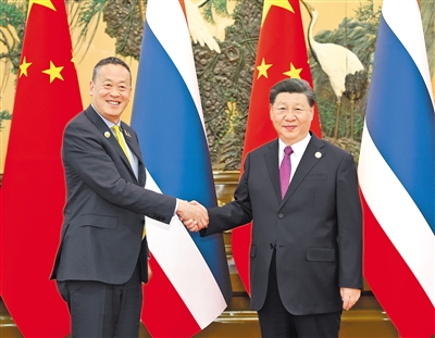 10月19日下午,國家主席習(xí)近平在北京人民大會堂會見來華出席第三屆“一帶一路”國際合作高峰論壇并進(jìn)行正式訪問的泰國總理賽塔。新華社記者 黃敬文 攝